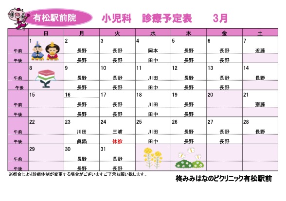 予防接種・乳児健診のみのお時間とさせていただいております。