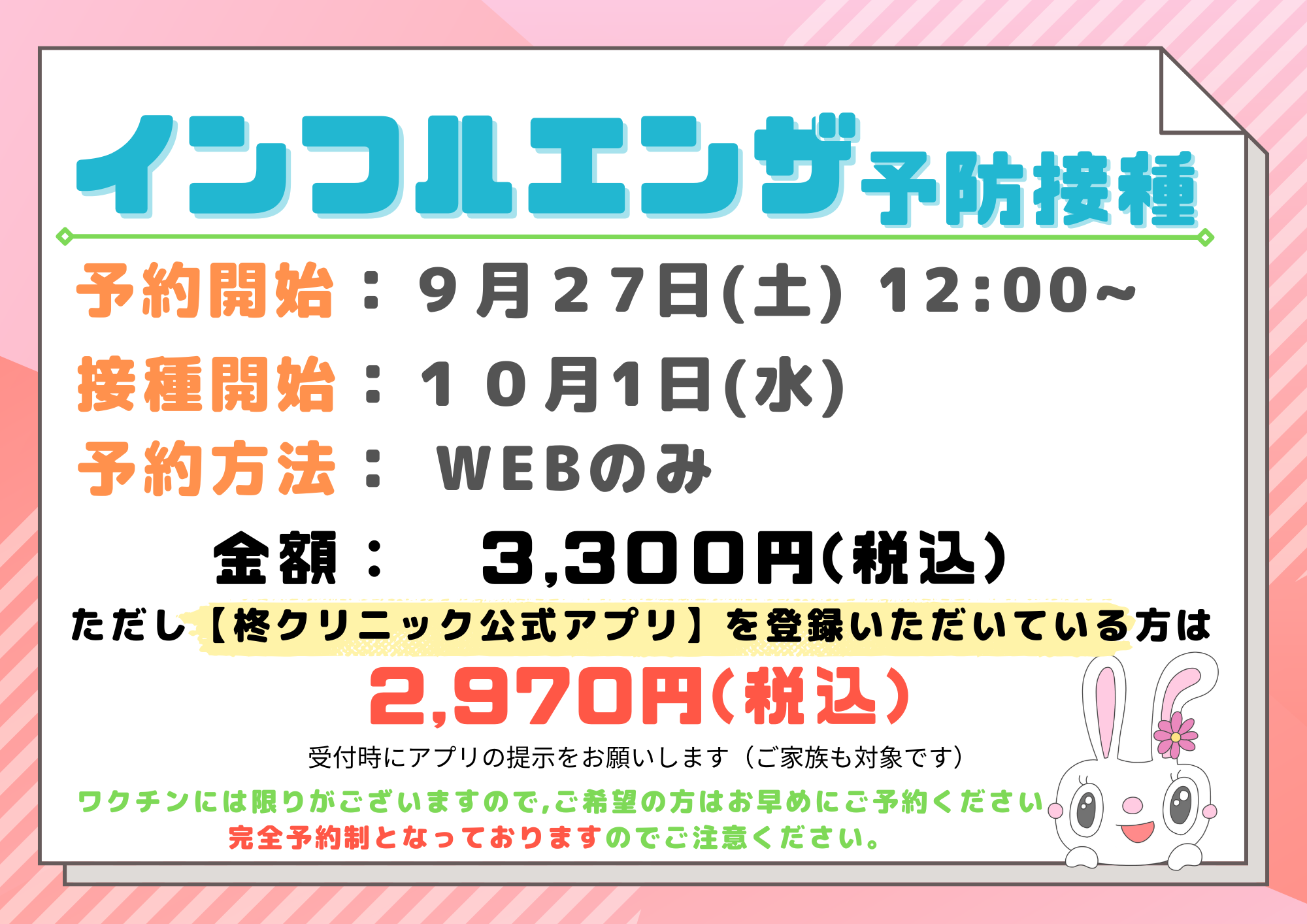 WEBの予診票は通常のインフルエンザワクチン用となりますのでご注意ください。