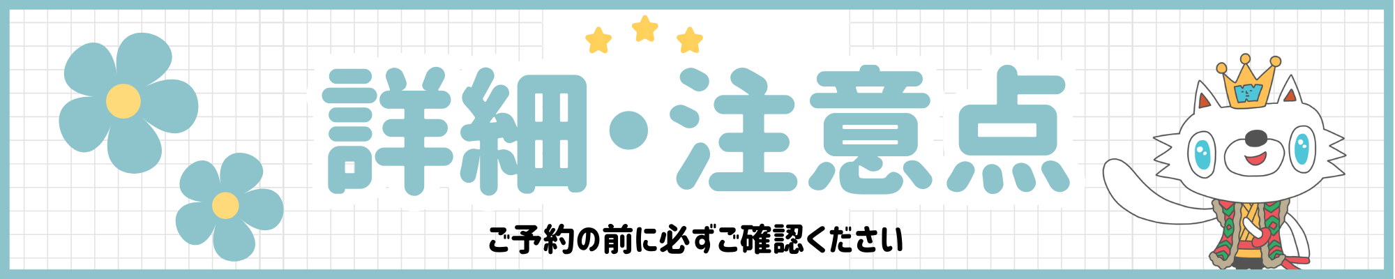 ※ご予約の前に、全ての注意点をお読みいただきますようお願いいたします