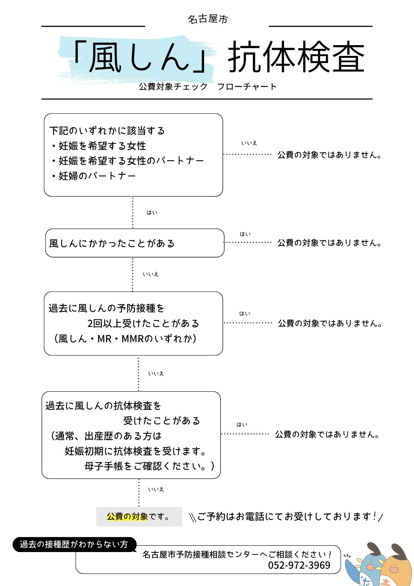 それぞれのフローチャートをご確認いただき、公費助成の対象となるかご確認ください。